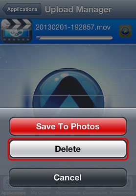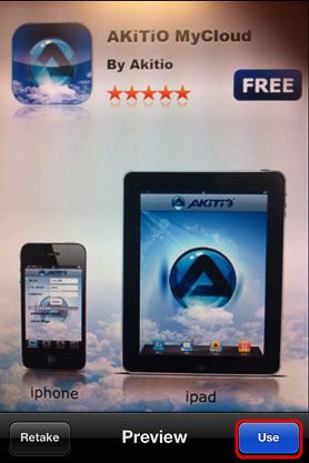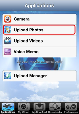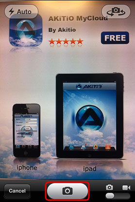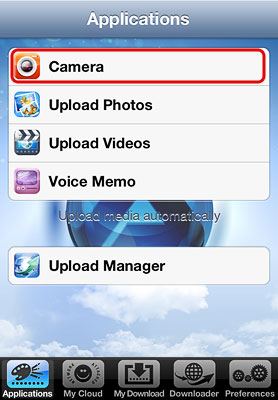 | Camera | Take a picture (or video) and upload the file directly to your NAS. | Click on Camera and then take a picture or video with the built-in camera of your device as usual. If you like it, click Use and the file is uploaded automatically to your NAS. |
