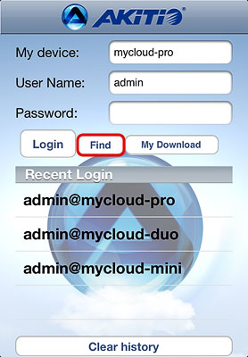 | Find | Locate any network drives that are connected to the same local network. Your mobile device has to be connected through WiFi in order for this function to work. |