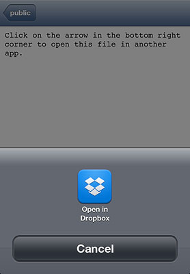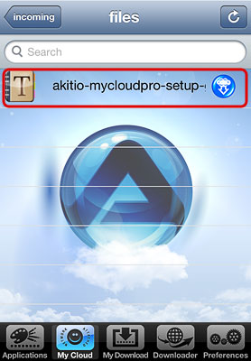 - If you prefer, you can also open files that are natively supported by the MyCloud App in another app. Select the file to open it in the MyCloud App, tap on the arrow icon at the bottom of the screen and you can select the app that you would like to use from the list.