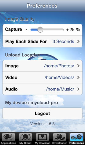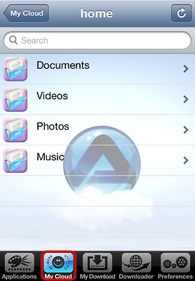The MyCloud file explorer allows you to browse and view the files that are stored on the network drive.