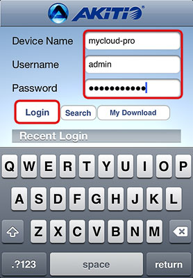 - The local IP address of your device has been filled in for the device name. You can now login with your username and password.