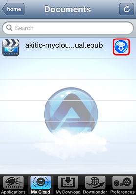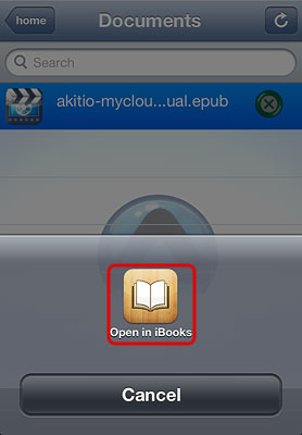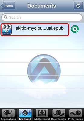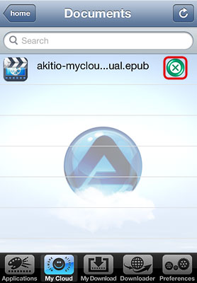 - Once the file has been added to the library of iBooks, you can go back to the MyCloud App and remove the file from your mobile device by clicking on the green icon beside the file name.