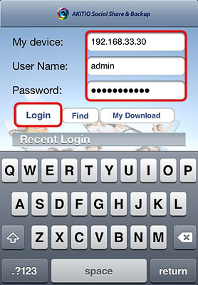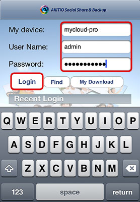 - The local IP address of your device has been filled in for the device name. You can now login with your username and password.