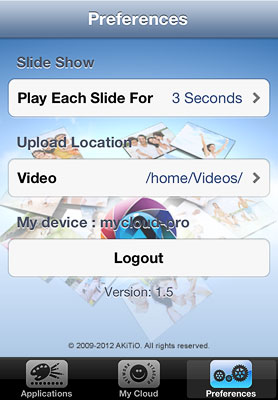 | Video to MyCloud | Upload videos from your album on the mobile device to your NAS. | Click on Video to MyCloud, locate the video that you would like to upload, select it and click on Choose to upload the file to your NAS. |