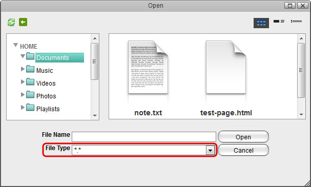- If the file extension of the file you are looking for does not end in *.txt, change the File Type to *.* in order to display all file formats.