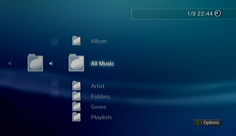 4. Depending on the file format, the files can be sorted according to different criteria but you can also simply display all the available files (e.g. “All Music”) or view the files in folder view (e.g. “Folder”) just like the files are stored on your network drive.
