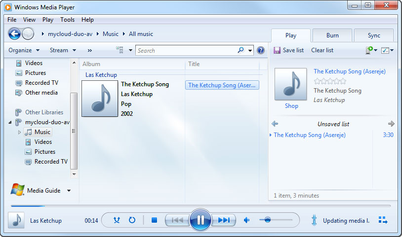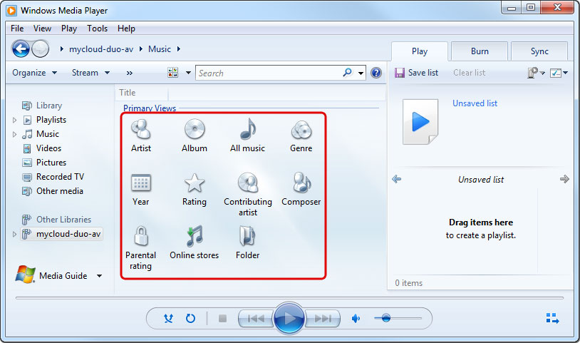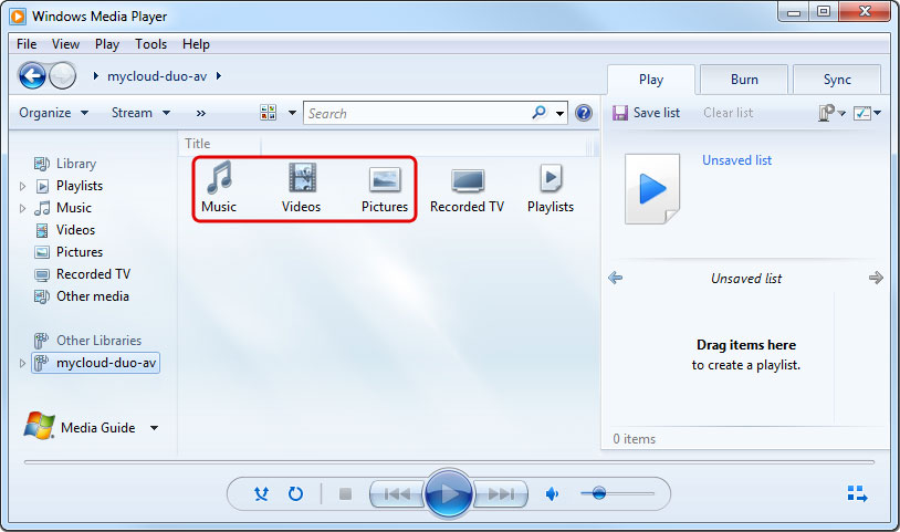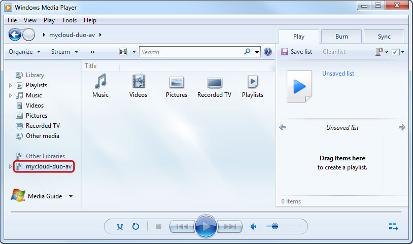 2. Select your network drive under “Other Libraries”. The name under which the device is listed is the service name you have entered in the media server preferences.
