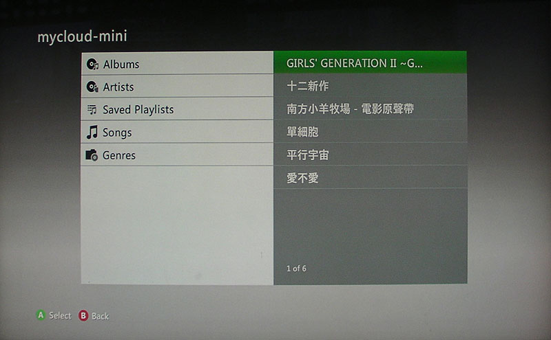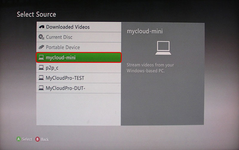 2. When you turn on the game console, the available media servers on the home network are automatically detected and a link to it is listed in each category for Photo, Music and Video.