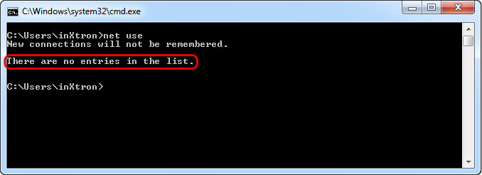 - If you use net use again at this point, your drive should not be on the list anymore.