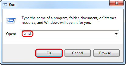 - Go to Start > Run and type cmd to open the command prompt.
