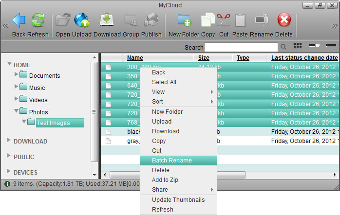 To rename multiple files in a batch once they are uploaded to the network drive, use the Batch Rename command.