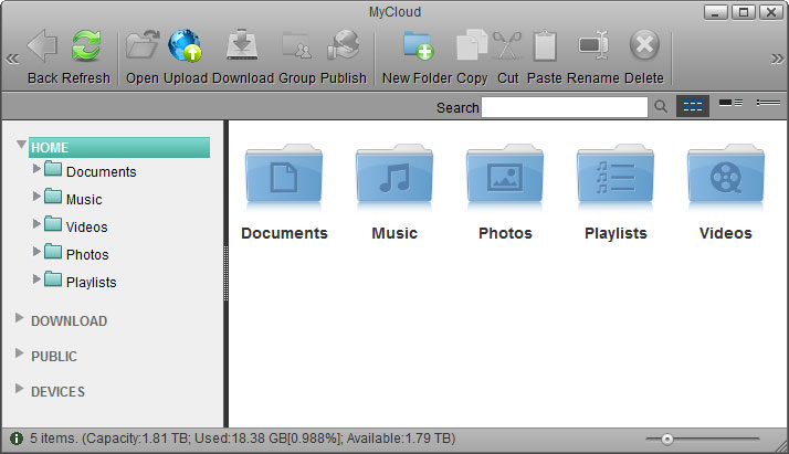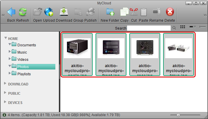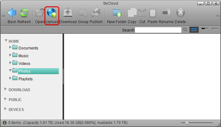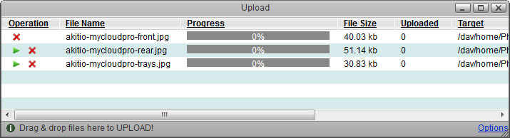 If you are planning to upload a large amount of files or very large files over 1.86GB, please use Samba or FTP instead. The web interface is not suitable for large file backups, not only because of the slower transfer rates but also due to other limitations (e.g. file size or upload/download restrictions for folders).