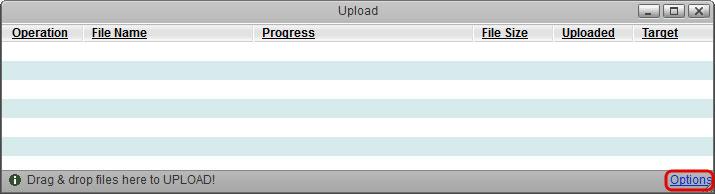 - If you have previously used the upload function and enabled “Don't remind me again!”, you can upload the files immediately. If you would like to change the upload method, click Options to go back to the selection window.