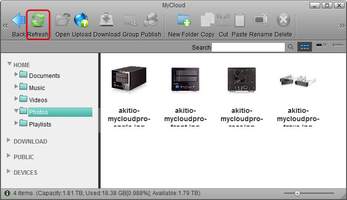 - When the upload is completed, click Refresh and you can view the files in the file explorer.