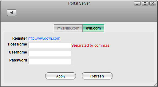 | Register | You can apply for a DDNS account at http://dyn.com. |
