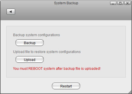 The system backup function allows you to backup and restore the settings and configuration of your network drive.
