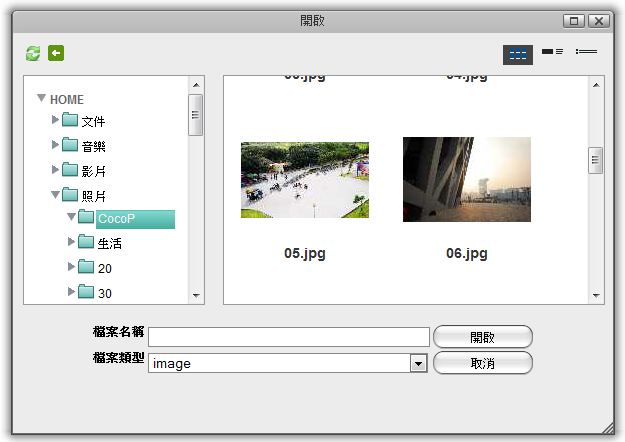 • 按一下內容面板(視窗右邊)左下方的加入按鈕,則開啟視窗將會出現。