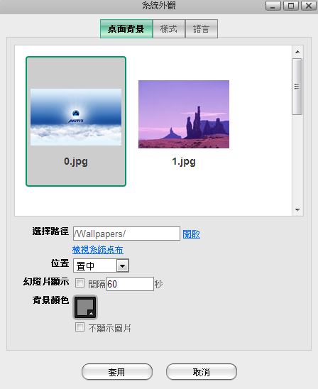 可以將桌面圖片更換成你自己所喜愛得圖片,如果您想自動更換桌面圖片,您可以指定存放相片的目錄,然後啟用幻燈片的功能。