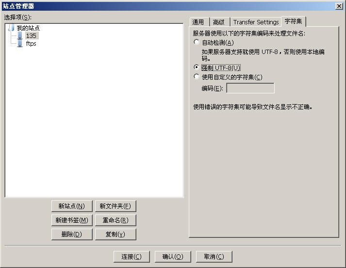你將需要在你的FTP客戶端程式中做出下列設定。