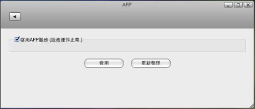 - 進入NAS網頁操作介面,前往系統設置 → AFP,開啟AFP服務。
