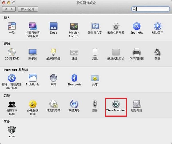 - 從下方Dock列進入系統偏好設定 → Time Machine