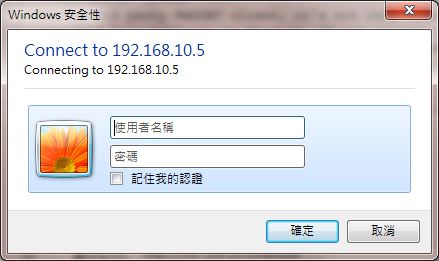 3. 當提示輸入登入訊息視窗時,請輸入您的用戶帳號名稱與的該用戶的密碼,然後點擊「確定」。