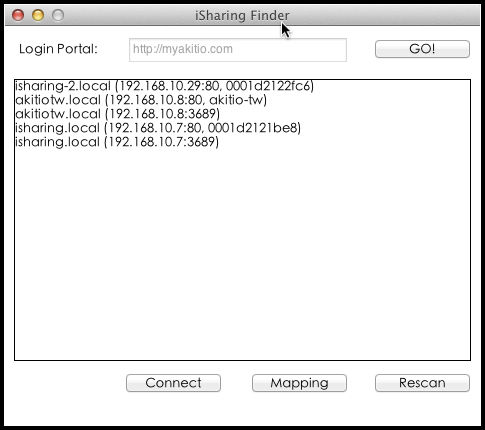 請到 http://wiki.myakitio.com/isharing_finder_mac.zip 下載 Mac 上的 iSharing Finder。