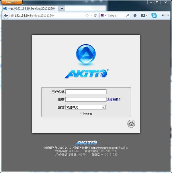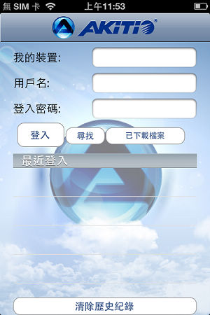 開啟 AKiTiO MyClou 軟體後,即可進入登入畫面,請依序輸入下列資訊:
