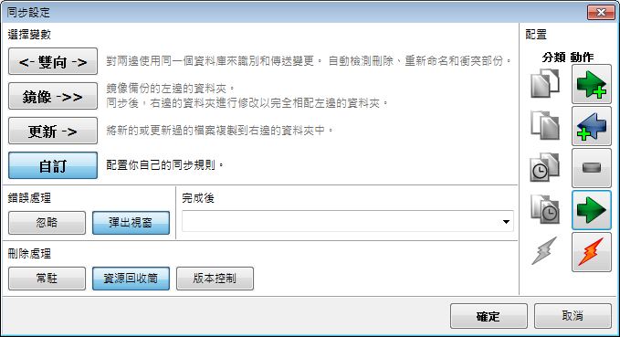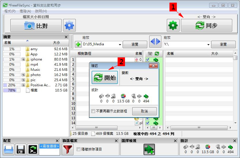 - 按下「同步」,確認動作正確後再按下「開始」進行同步作業。